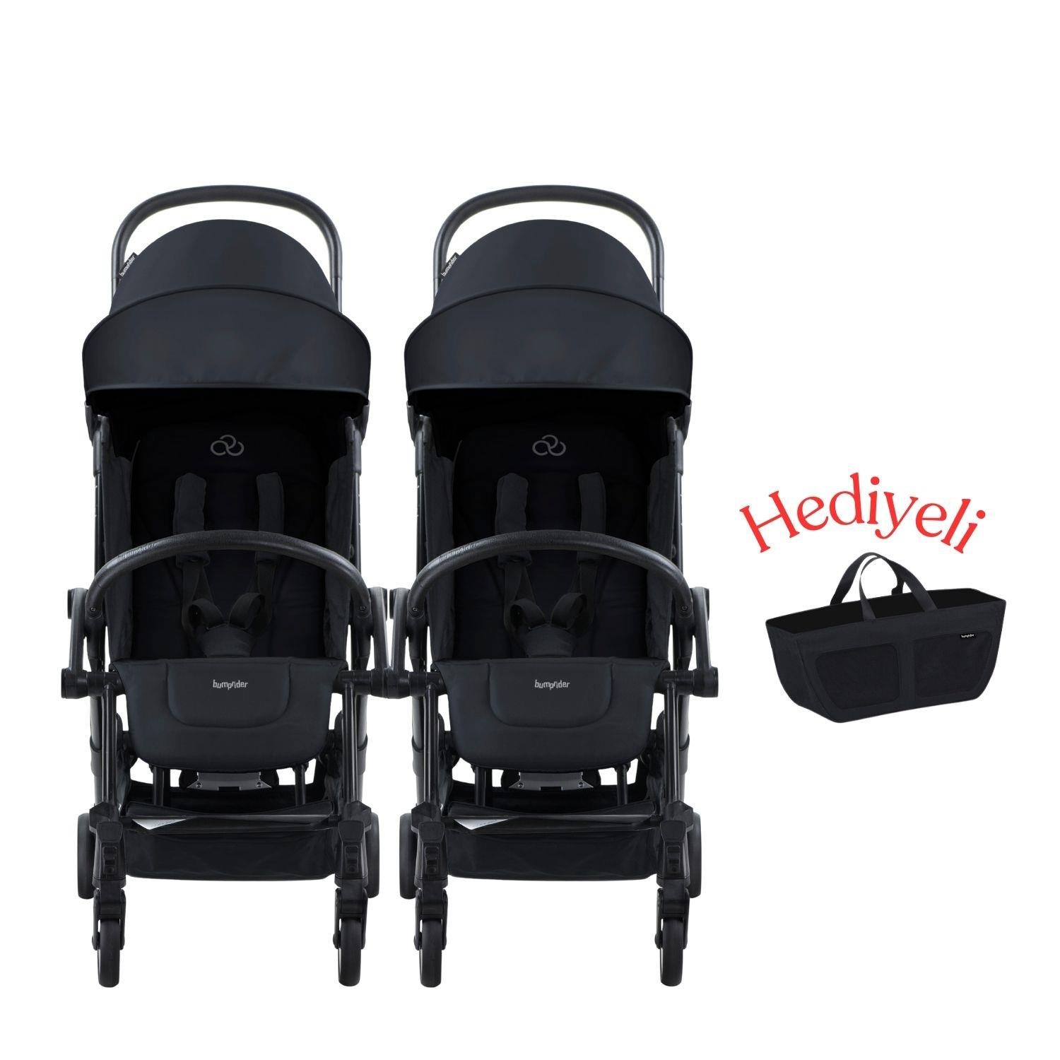 Bumprider Connect³ İkiz Bebek Arabası / Black - Black & Yan Düzenleyici Çanta Hediyeli (BR51284-2104İKYDC)