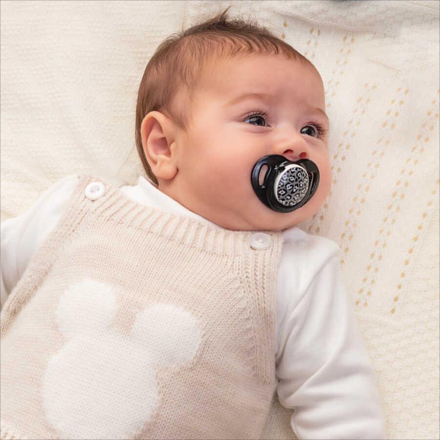 Emziğin silikon ucu bebeklerin diş ve damak gelişimlerine zarar vermemek için damaklı formdadır.